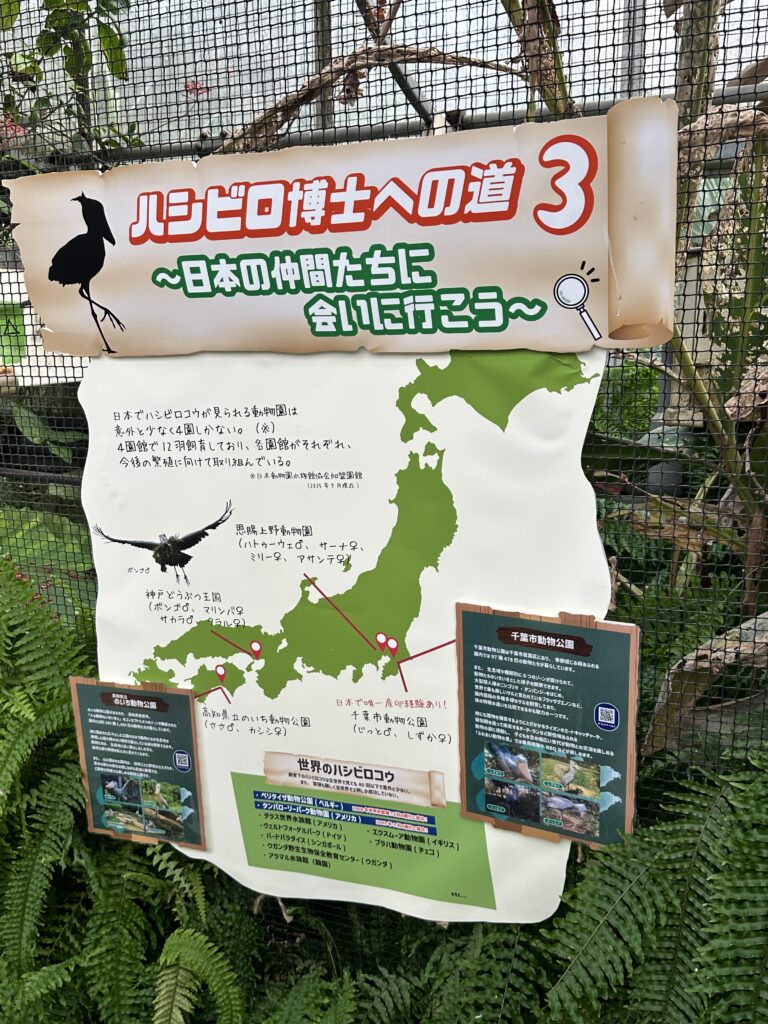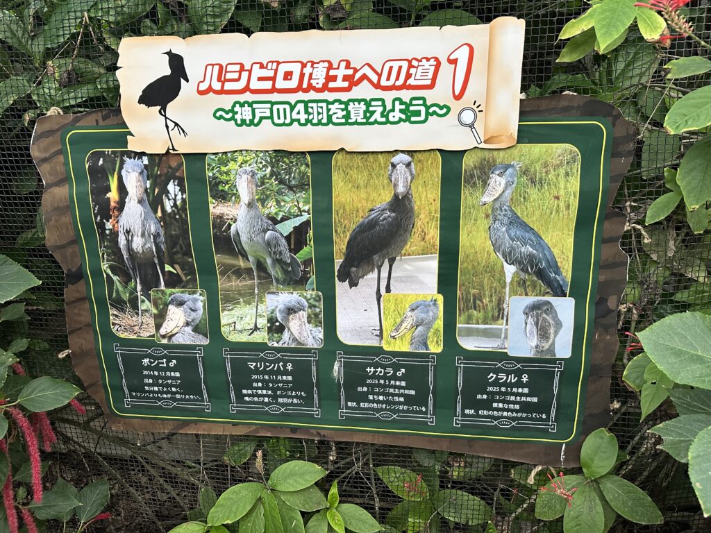 ちなみに、展示場にはたくさんのハシビロコウの解説があり、見ていて勉強になります!写真は2026年1月の物なので、まだ神戸には「4匹」となっています。